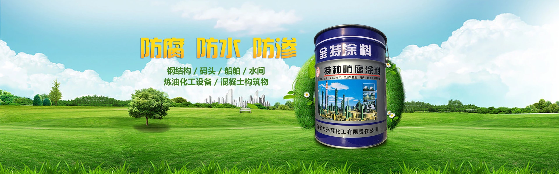 西安興輝化工有限公司,始建于2008年,廠址位于風景秀麗、交通便利的西安灃京工業園。優越的地理位置和交通,奠定了興輝化工公司強勢發展的基礎,使“金特” 涂料更快捷的送到您的手中。公司精良的制漆設備造就了金特涂料的堅實基礎。公司生產研發銷售的環氧類防腐涂料、氯化橡膠類防腐涂料、聚氨酯類防腐涂料、丙烯酸系列防腐涂料、IPN8710互穿網絡系列防腐涂料、導靜電防腐涂料、有機硅耐高溫防腐涂料、氟碳漆、各色醇酸、硝基系列涂料等近百個種類。公司產品廣泛應用手自來水、污水處理、天然氣管道等市政工程及發電廠、化工廠的機城設備、油田、貯罐、碼頭、船舶、管道設計等防腐。公司... 【查看詳細 >>】